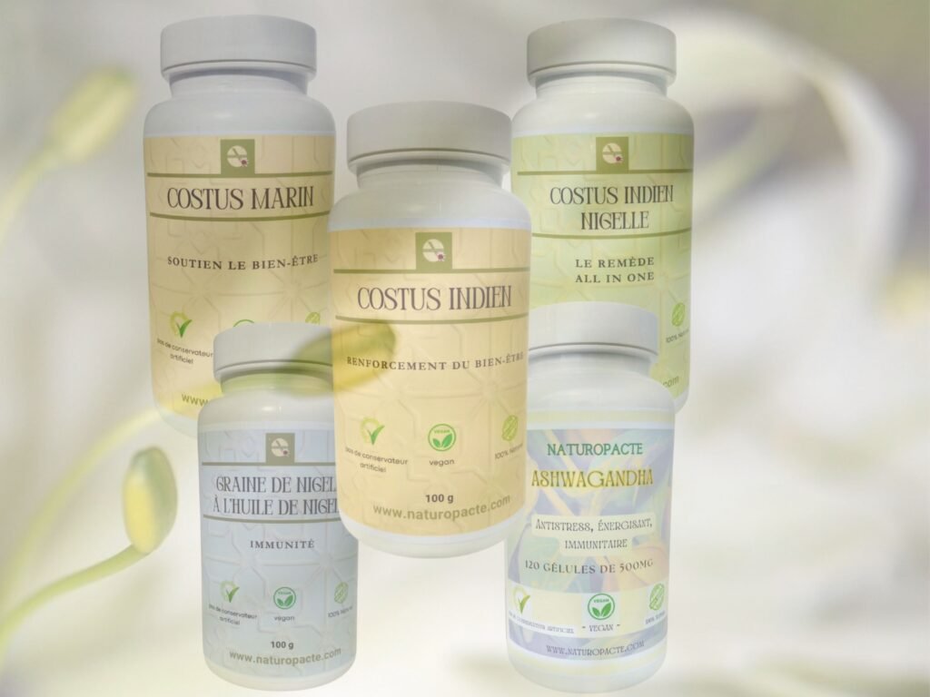 Plante millénaire reconnue pour ses bienfaits naturels, le Costus soutient l’équilibre du corps et le bien-être intérieur.